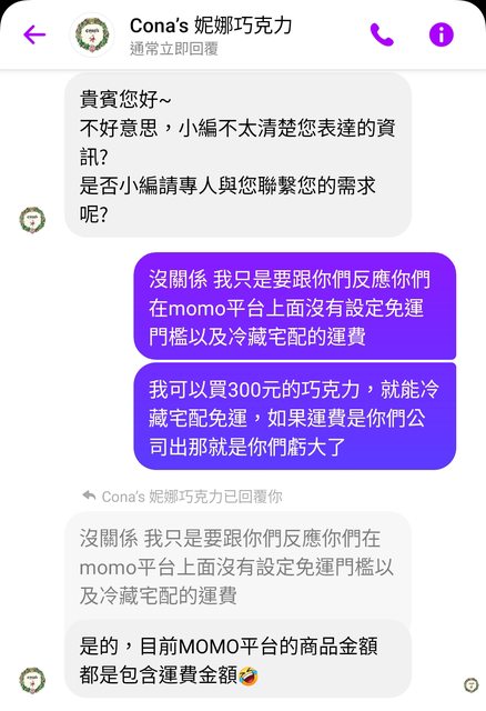 常常臉書看到這個牌子巧克力的廣告, 現在好像大潤發之類的也有進 之前查蝦皮跟他們官網 都有冷藏運費$180或$3000免運 覺得要團購太麻煩就沒買 昨天發現他們在Momo平台的商品 在結帳過程沒顯示冷藏運費 測試下了單,今天也的確是黑貓冷藏宅配過來 原本想說可能是bug,連$300元巧克力 都能免掉$180冷藏宅配運費 第一時間是想上來發文分享一下 但還是決定先跟小編聯繫 剛剛確認了一下他們在momo的確目前就是 價格含運 所以就安心上來分享給 原本有在觀望這個品牌巧克力的人 http://i.imgur.com/vjwqONm.jpg