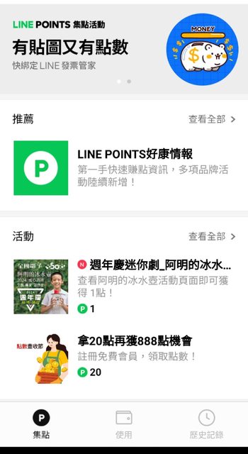 LINE POINT任務牆 全國電子瀏覽指定網頁+1 LP (剛剛才完成都還有) 如果額滿(任務消失) 記得今天晚上11:05過後 再進任務牆刷看看 應該會再跑出來 ============== iiioooiii: Line game好友對話裡面活動有兩點 先搜尋: LINE GAME對話框 直接開始遊戲測驗 完成後點領取獎勵,LINE POINT 2入點 -- ※ 發信站: 批踢踢實業坊(ptt-club.com.tw), 來自: 122.118.137.125 (臺灣) ※ 文章網址: https://ptt-club.com.tw/Lifeismoney/M.1729736706.A.F96