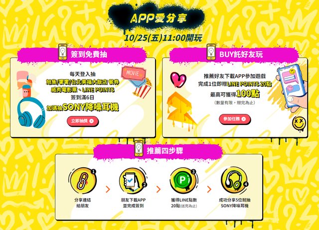 APP簽到天天抽LINE點數、SONY耳機 https://i.imgur.com/pG9hSLK.png