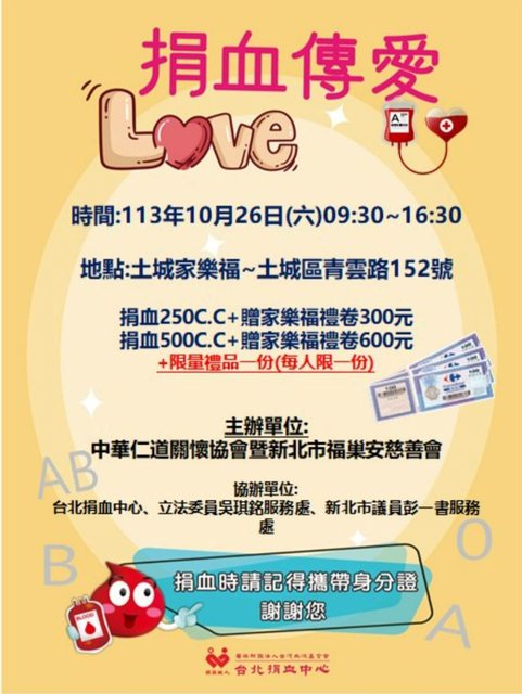 david0426: 有捐血的 也可以去捐血版領p幣喔 42.77.74.233 10/26 12:12