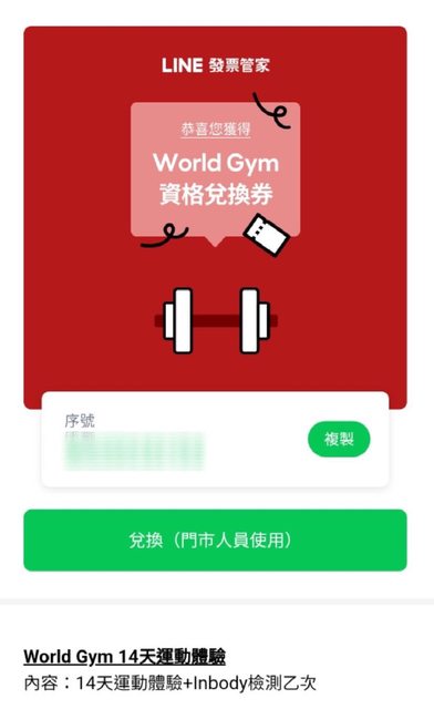 : 點選進入活動網頁拉到最下面 : 就有分享連結 : 另外line發票管家也有白白免費貼圖 : 可以免費下載 : ----- : Sent from JPTT on my Samsung SM-S9110. 大家這個月有連線成功了嗎? 我拿到worldgym 14天健身房體驗和inbody檢測乙次 https://i.imgur.com/yygBh7K.jpeg