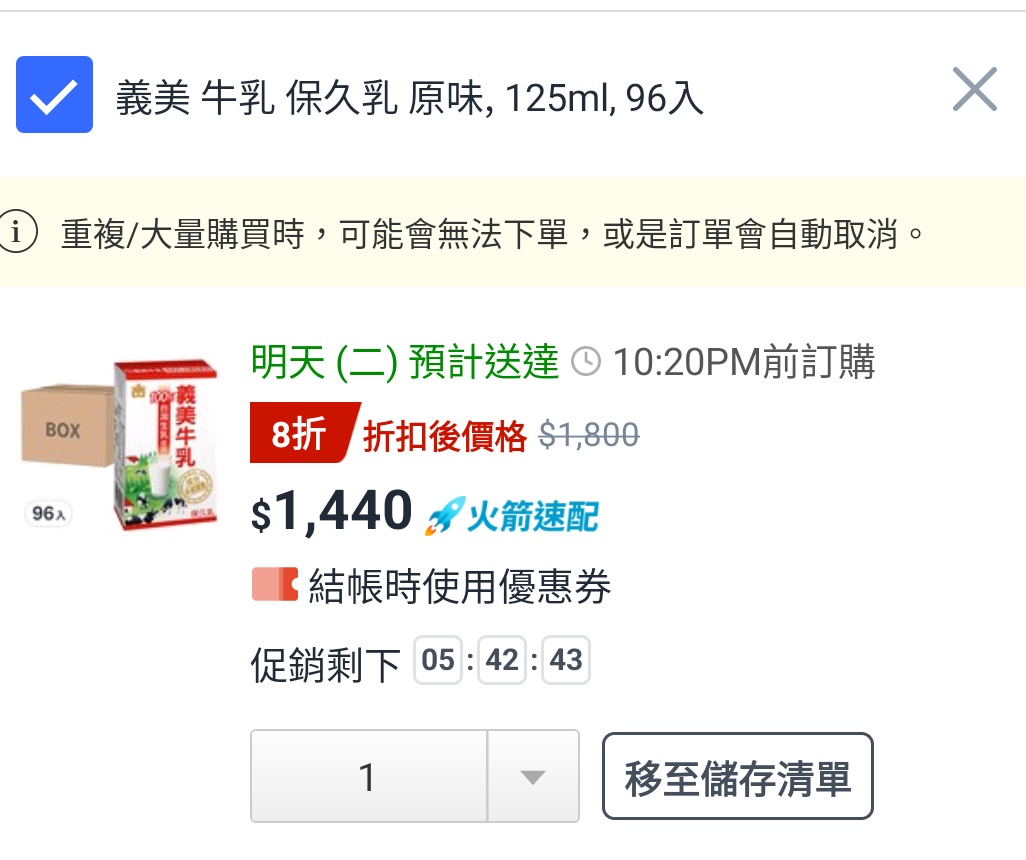 lch1218: 義美保久乳各平台都缺貨,買了二箱折完 223.138.154.36 10/28 19:22
