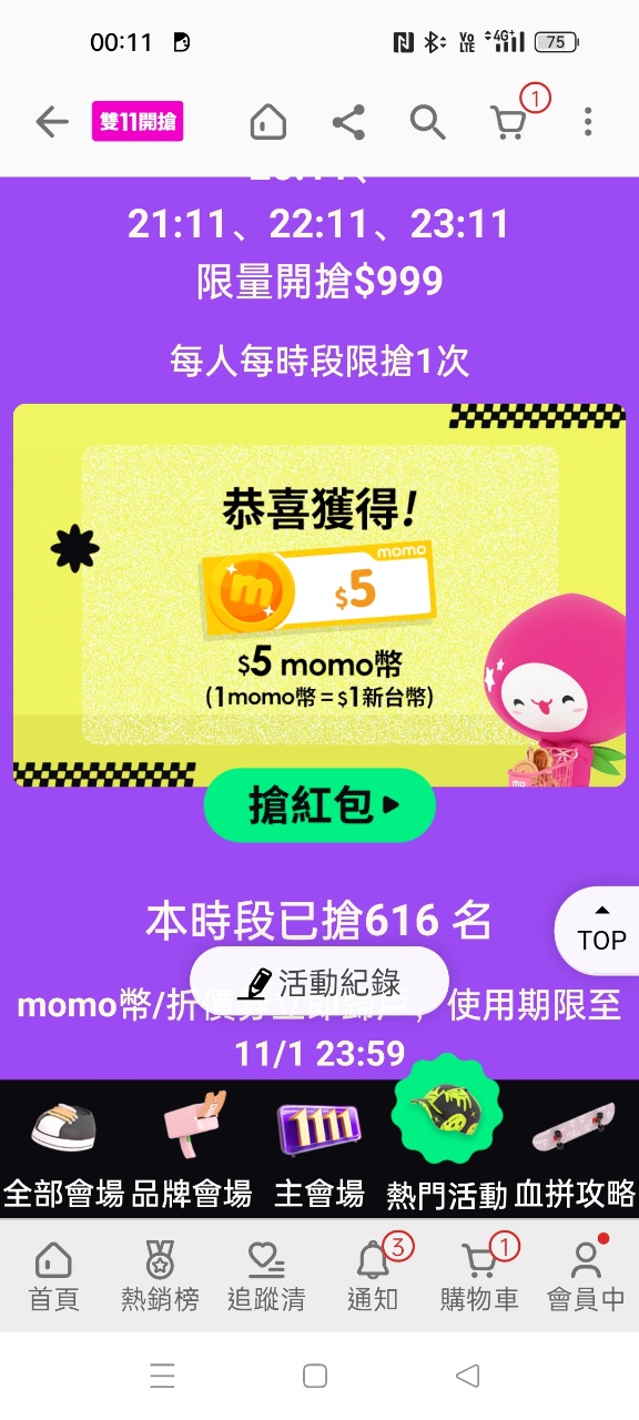 logen: 但第一天的紅包6點寫是11/11到期,意思是11 1.34.36.125 11/01 01:17