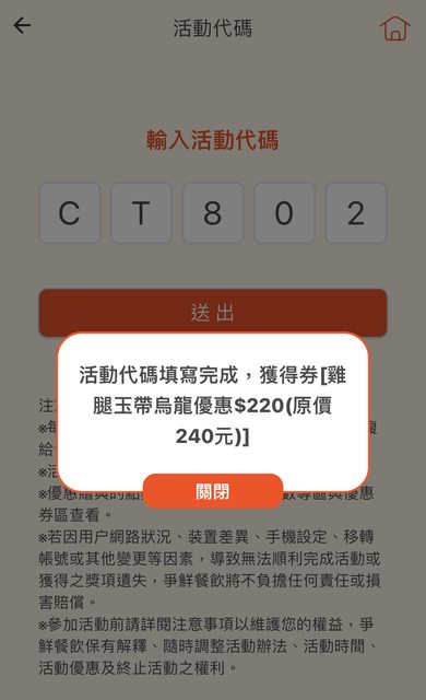 3) 進入 活動代碼 頁面,輸入優惠碼即可獲得
