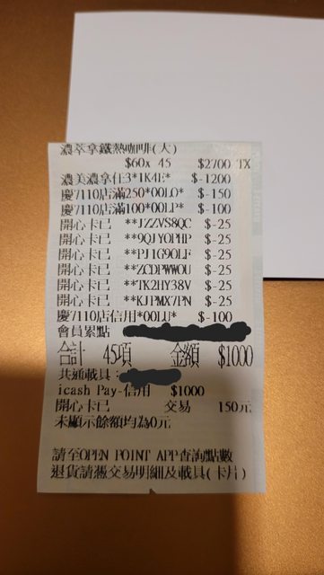 → jeff888chang: 63杯濃拿,凌晨00:55,icash pay 27.247.38.223 11/07 01:37