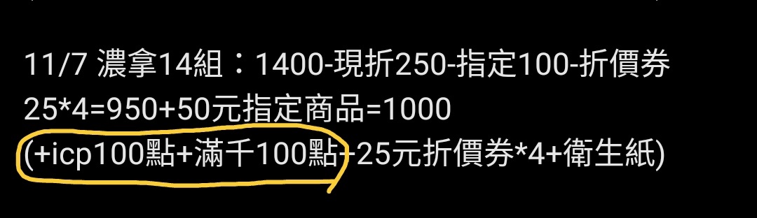 推 ni830720: 因為折價券先折抵 再直接滿額折 27.51.136.171 11/07 00:54