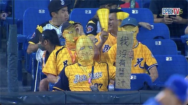 再來就是李嚴防曬面巾-這商品太猛 猛到象迷也揪團戴去洲際球場