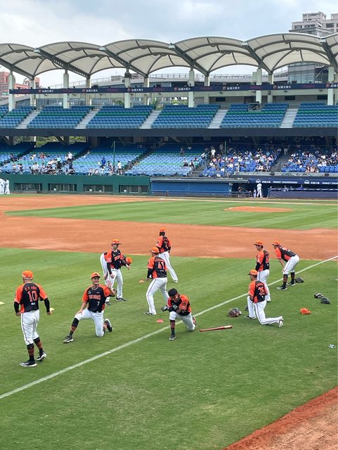 原本想坐三壘 但考慮到女孩們沒來加上我的球衣還在路上所以忍痛(?)坐一壘