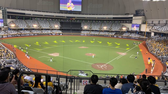 大巨蛋的燈光秀很厲害,可以聚光球員也可以打其他顏色的光