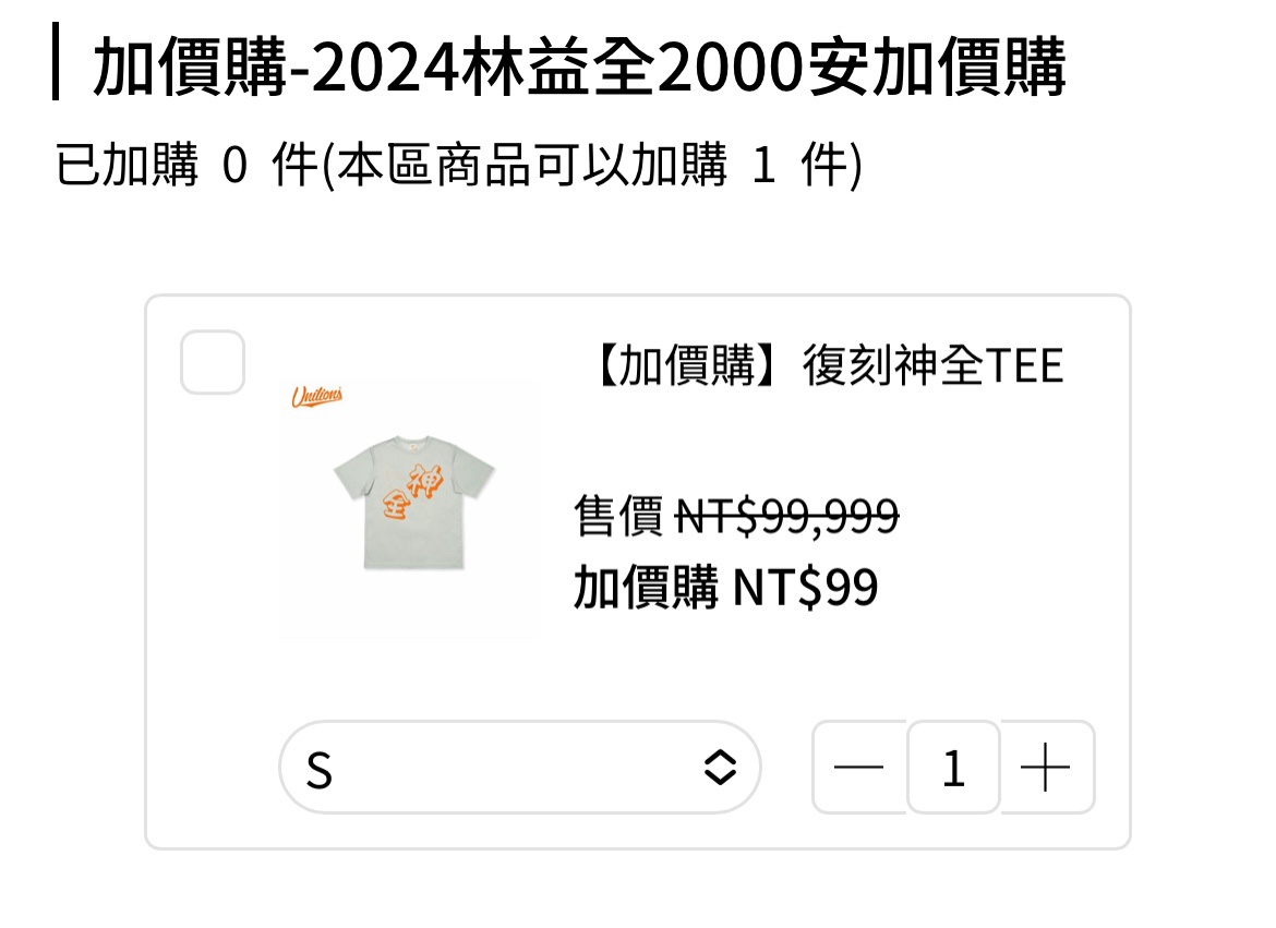 推 WongTakashi: 注意 如果加購神全T 該筆訂單即無法使用兆豐9折優惠 08/15 12:50