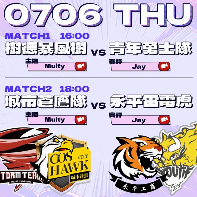 18:00 城市蒼鷹隊(例行賽第六) vs 弘光獵鷹隊(公開賽第三)