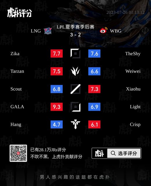 標題[閒聊] WBG vs LNG 虎撲賽後評分表