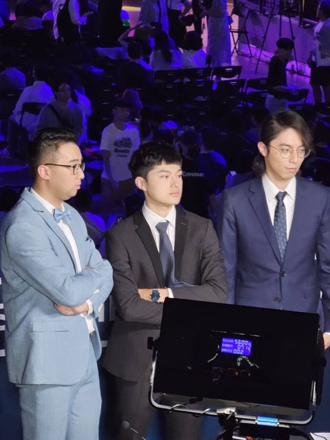 這次坐在D區靠中間的位置,離轉播台不遠,總決賽是這三人播報基本上就是品質(X)甲文(O