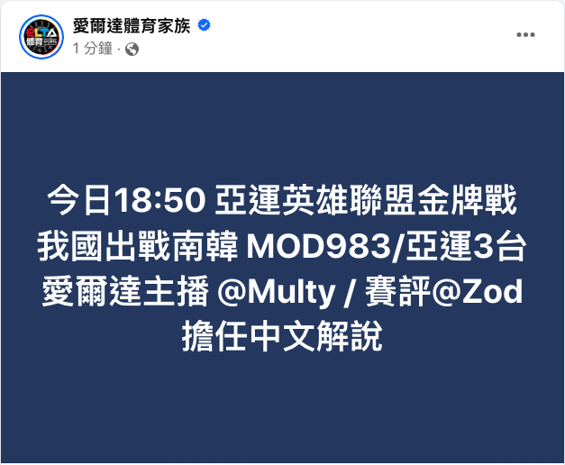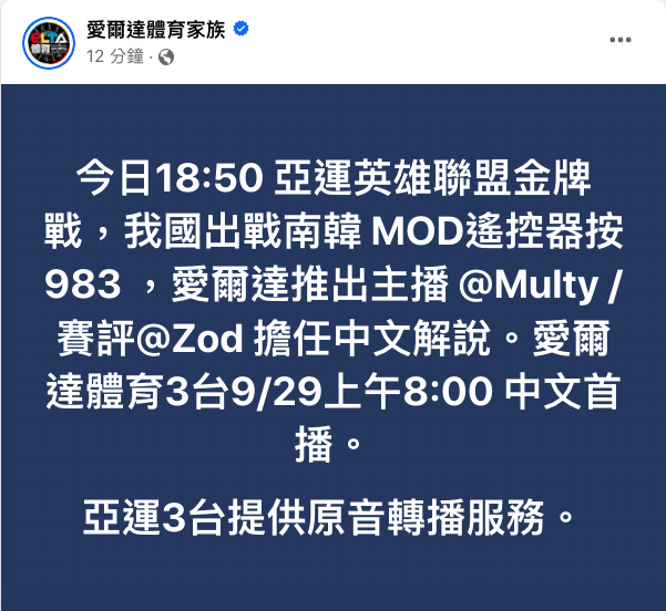 YuiiAnitima : 公告了 亞運三台中文轉播 09/29 01:09