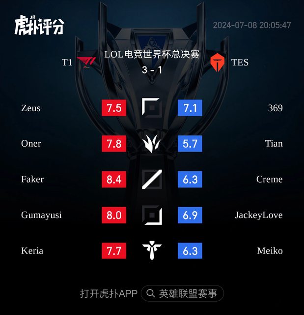 標題[閒聊] T1 vs TES 虎撲賽後評分表