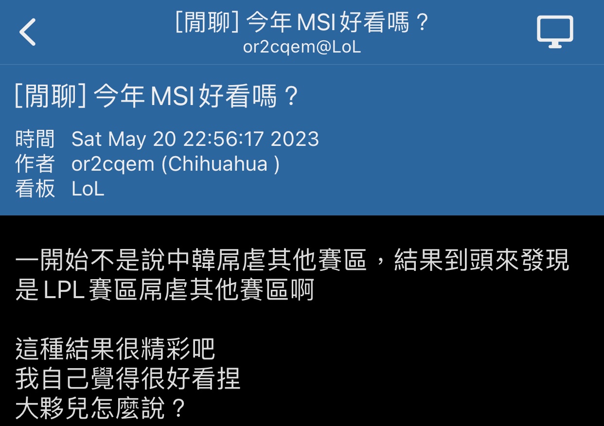 推 betterbutter: 好了啦65樓 lpl贏就是奧批奧屌虐其他賽區 被一串四 07/15 05:52