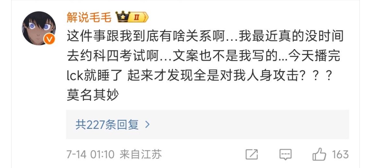 推 adlazyyy : LPL微博還在叫人家不要過度解讀 超可悲 07/14 23:46