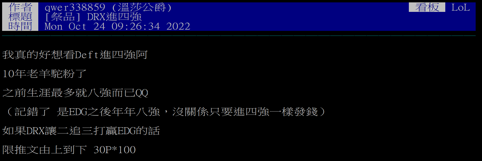 噓 windnduck : 好喔,LCK中路都重新找一批人吧,反正都打輸Chovy 08/03 16:42