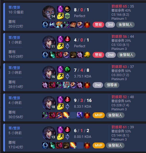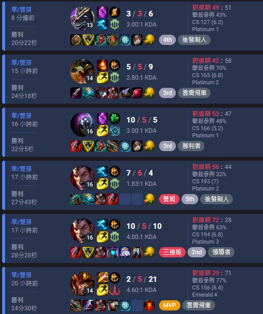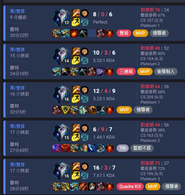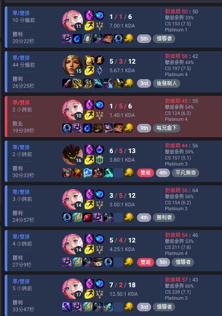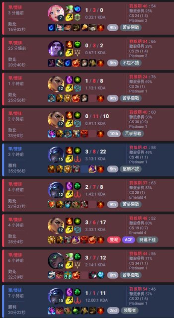 大概是這樣...除了0/11/10那場我送到一個不可思議導致輸掉之外