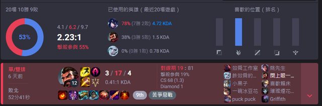 推 k960674 : 和那兩個慘人同隊的畜生都6X%勝率大師以上 10/30 17:57