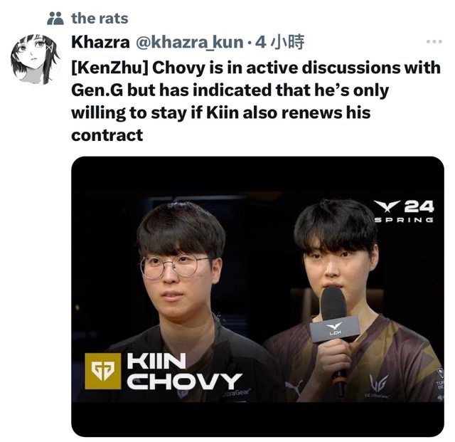 推 a2364983 : 看Reddit說Kiin的條件是Chovy Chovy的條件是Kiin 11/13 17:23