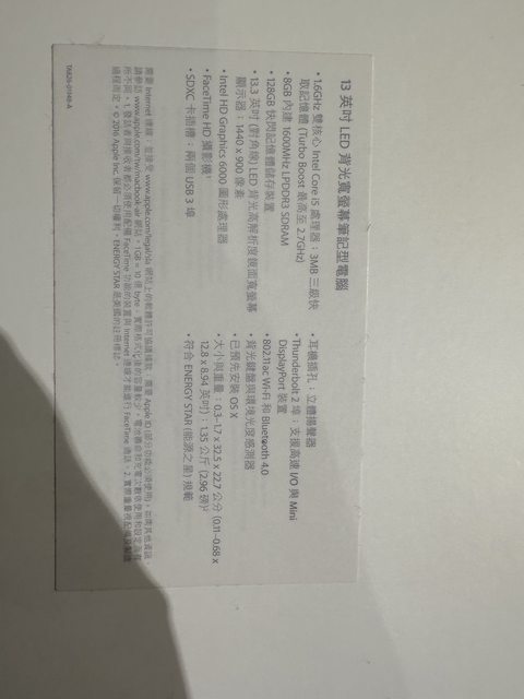 Macbook air 13吋 2016生產