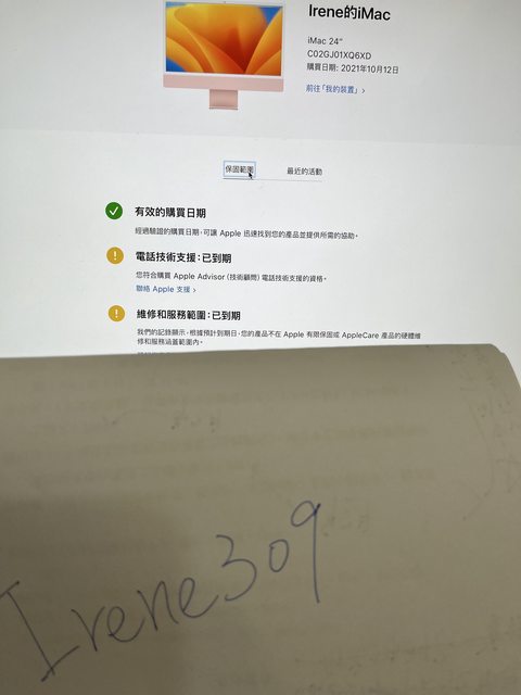 標題[販售] 新北 iMac 24 M1/16G/1TB 8/8核