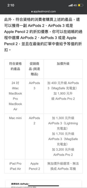 Airpods 2,收費2000元