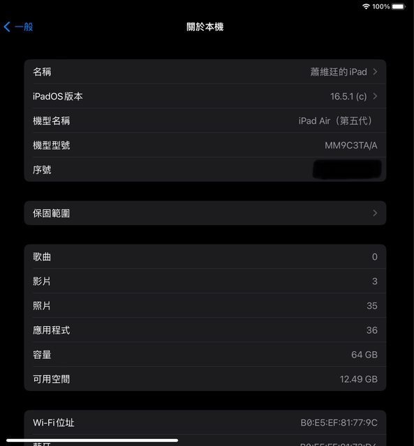 標題[販售] 高雄 iPad Air 5 64G 黑