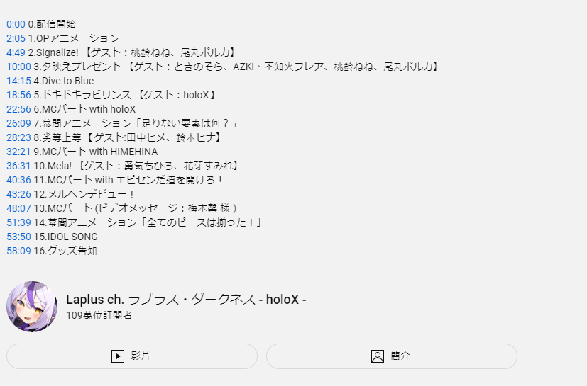 → as3366700: 頻道主在簡介放時間戳就會自動生成 11/27 01:28