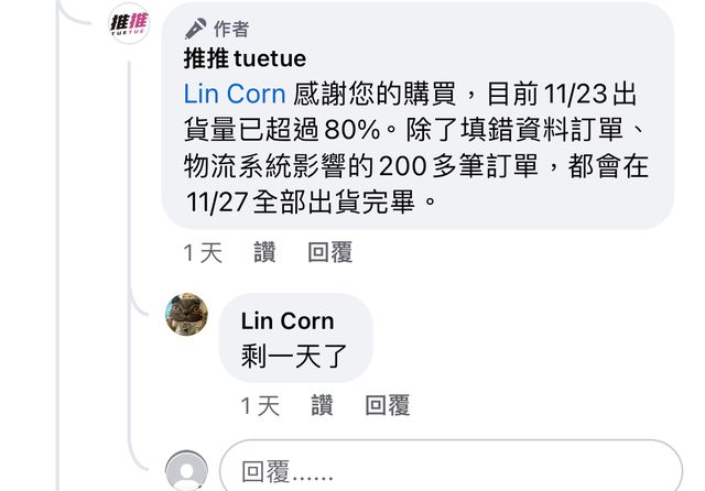 看FB留言回說11/27會全部出掉