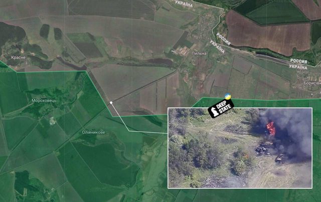 攻擊的第一張畫面。三台俄羅斯設備被毀。