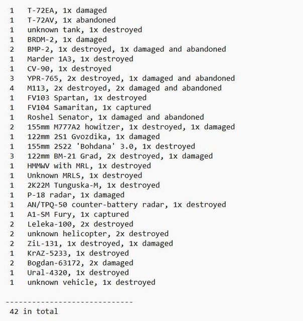 目視確認損失軍事裝備統計 2024.05.15 ~ 05.17