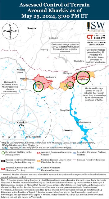 5 月 25 日,沃夫昌斯克附近和境內的戰鬥