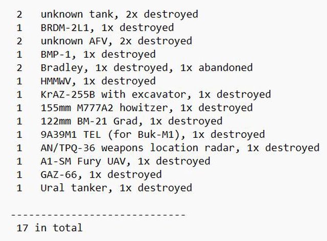 目視確認損失軍事裝備統計 2024.05.24 ~ 05.26