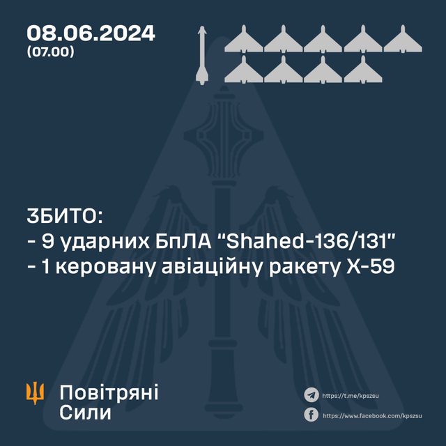 一枚 Kh-59/69 和 13 架 Shahed 無人機中的 9 架
