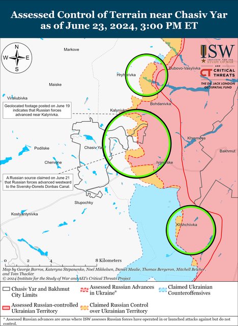 6月22日至23日,俄羅斯軍隊繼續在Chasiv