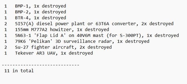 部隊擊落了 11 個俄羅斯目 標。