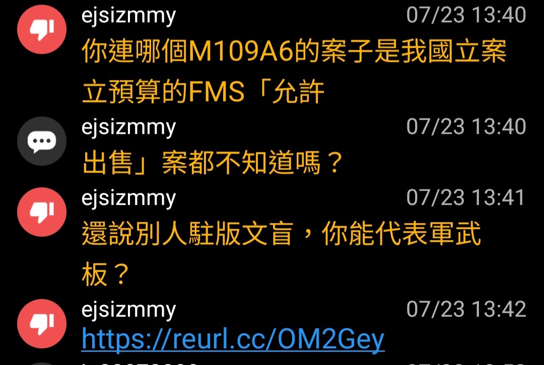 → ja23072008 : 目前也僅有一位造謠前科慣犯,在本版說銳霆案的M109 07/23 22:06
