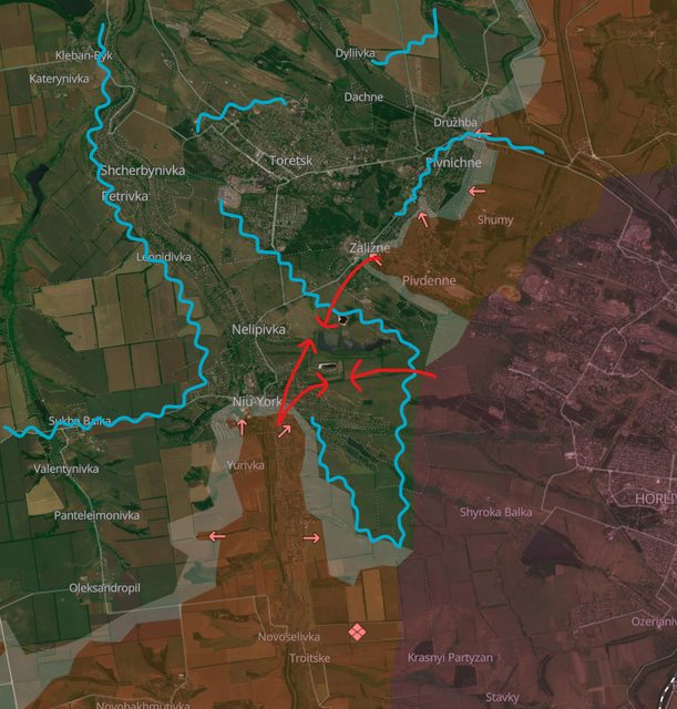俄軍持續在托列茨克東方跟紐約側翼開拓