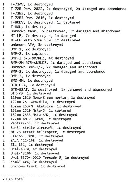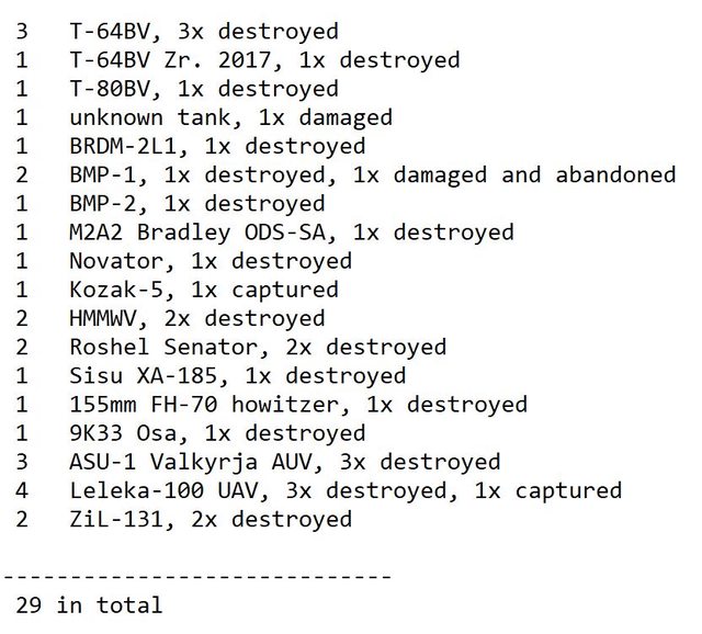 目視確認損失軍事裝備統計 2024.07.27 ~ 07.30