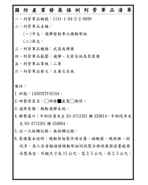 最新的國防部釋商軍品列管清單,
