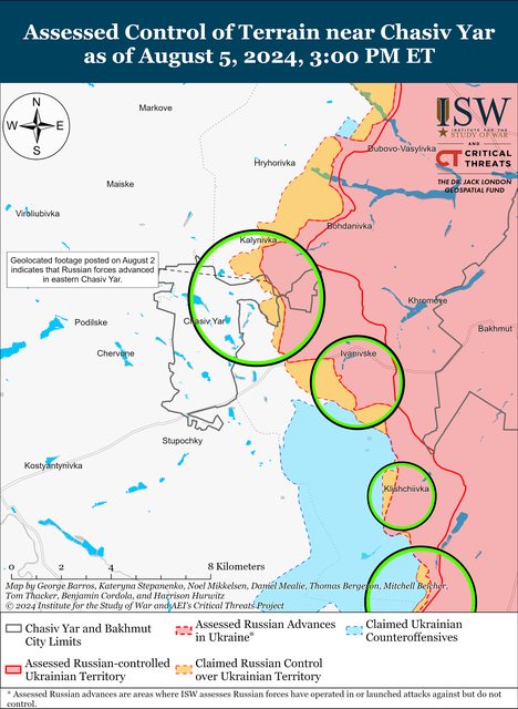 8月5日,俄羅斯軍隊繼續在Chasiv Yar方向