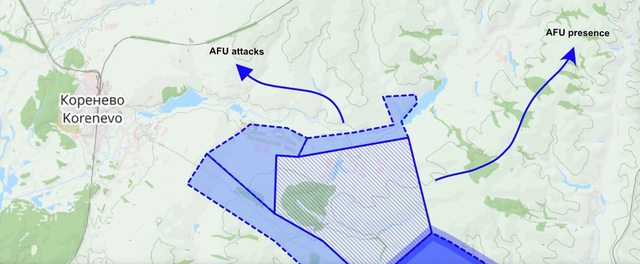 在西北,烏軍繼續嘗試繞過 Korenewo