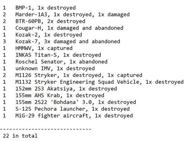 目視確認損失軍事裝備統計 2024.08.16 ~ 08.18
