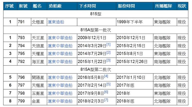號851);815A型在815型基礎上改進研製,造有兩個批次,共8艘。