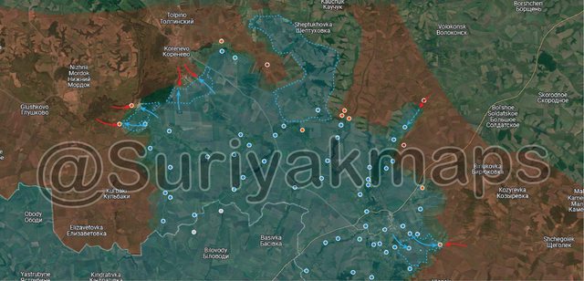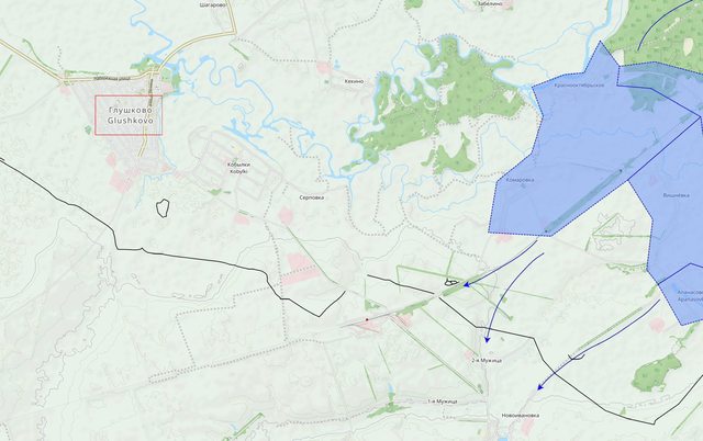俄方Glushkovo 陣地東邊顯然發生激烈戰鬥