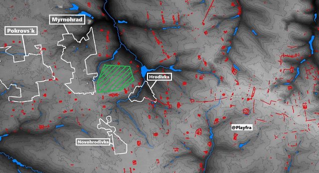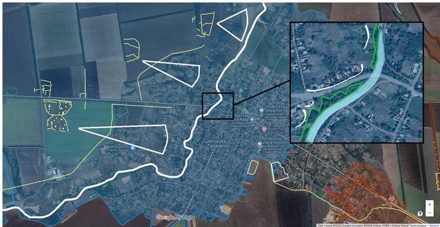 在 Hrodivka 本身,白線代表下一條堅強的後備