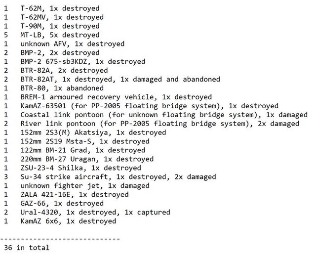 目視確認損失軍事裝備統計 2024.08.22 ~ 08.24