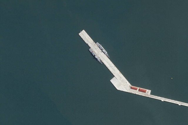 停靠的2艘輕型巡防艦(corvette,中國稱「護衛艦」)一樣。這個新碼頭是由北京資助